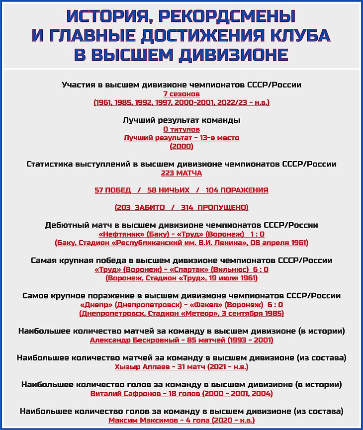 Очень хочется верить, что такая самобытная и интересная команда, со своими преданными болельщиками и симпатичной игрой, все же по итогу сезона останется в Премьер-Лиге (кстати если это будет сделано, то Воронеж впервые в своей истории будет проводить в Высшем дивизионе свой третий сезон подряд).