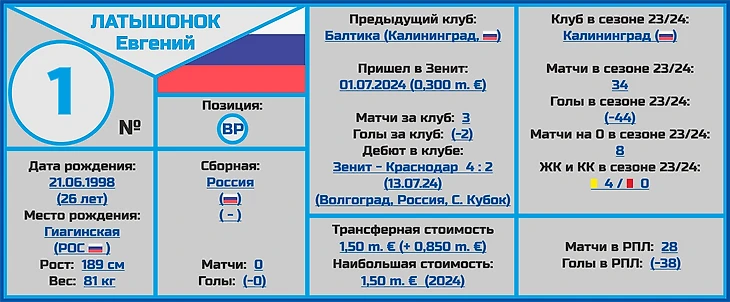 Что же касается основного состава непосредственно самого «Зенита», то тут все три вратаря имеют примерно равные шансы на пост номер один, но по началу сезона ставка тренерского штаба делается на только пришедшего Латышонка.