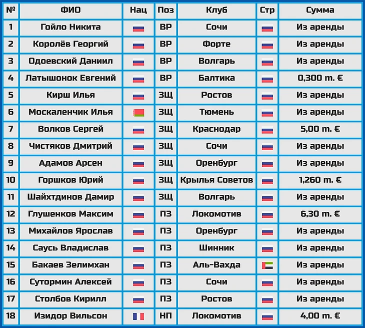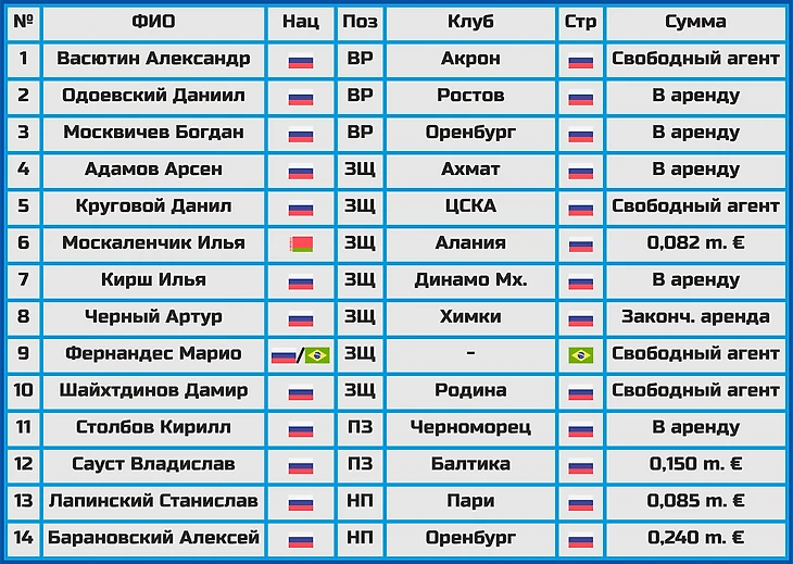 До закрытия трансферного окна этот список может существенно поменяться, ведь слухов вокруг клуба из Санкт-Петербурга сейчас крайне много, причем как на вход, так и на выход.