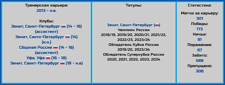 Именно в клубе с берегов Невы Сергей Семак и начал свою, теперь уже, не менее значимую и именитую тренерскую карьеру, войдя по окончании сезона 2012/13 в тренерский штаб клуба (в качестве помощника Лучано Спаллетти).