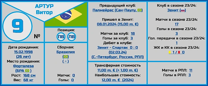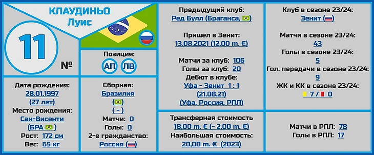 Бразильский вундеркинд, который только в феврале этого года отпраздновал свое совершеннолетие, стал настоящим открытием весенней части чемпионата, запомнившись не по годам смелой, и в какой-то мере, даже по-хорошему наглой игрой, отменной техникой и сумасшедшей скоростью (особняком в этом плане стоит первый полуфинал Пути РПЛ в Кубке России прошлого сезона, в котором «Зенит» смог обыграть в Москве своих заклятых «врагов» из «Спартака», а сам молодой футболист оформил дубль).