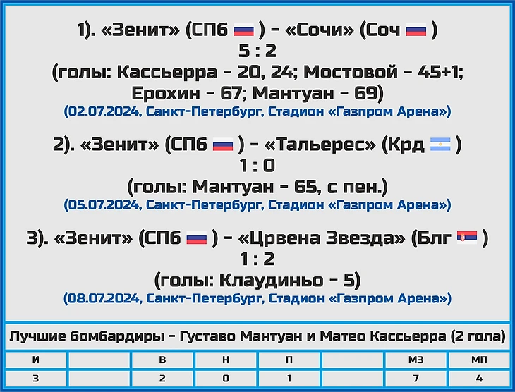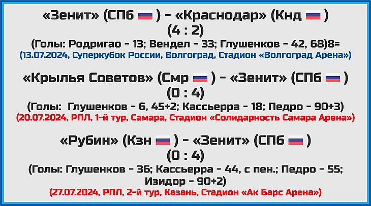 Однако на деле есть, как есть, динамовцы не выиграли, а «Зенит» стал по итогу победителем, попутно добавив в свою коллекцию титулов и Кубок России 2024 (в финальном матче обыграли калининградскую «Балтику»), а совсем недавно ещё и Суперкубок России (тут были сильнее «Краснодара»).