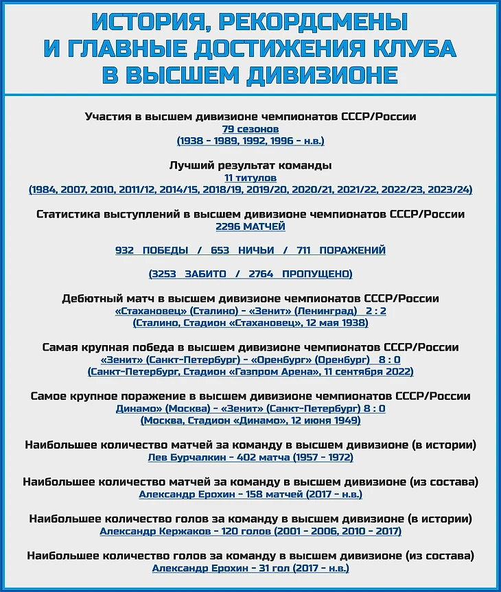В прошлом сезоне футболисты «Зенита» выиграли свое уже 6-е чемпионство подряд, и этот результат является повторением рекорда в истории чемпионатов СССР/России.