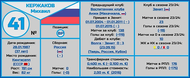 По ходу прошлого сезона в воротах «Зенита» успело сыграть сразу три вратаря - ветеран Михаил Кержаков (большую часть сезона), а так же его более молодые коллеги по амплуа - Александр Васютин и Денис Адамов.