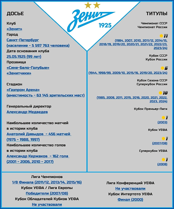 «Зенит» в сезоне-24/25: состав, статистика, исторические факты и многое другое