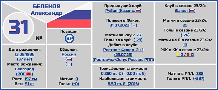 Голкипер «Факела» Александр Беленов представляется мне на данный момент одним из самых опытных и уважаемых футболистов во всей РПЛ.