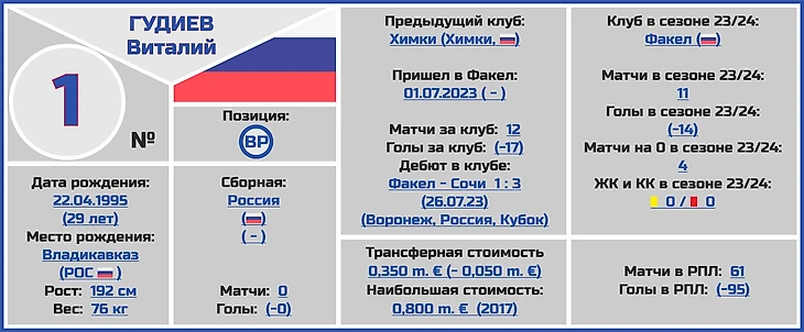 Если ничего глобально не изменится, то и этот сезон первым номером будет Беленов, хотя и бэкап у него отличный - 29-летний Виталий Гудиев в нужное время спокойно подменял Александра, и всегда готов сыграть за основной состав не менее надёжно и уверенно, чем его коллега по амплуа.
