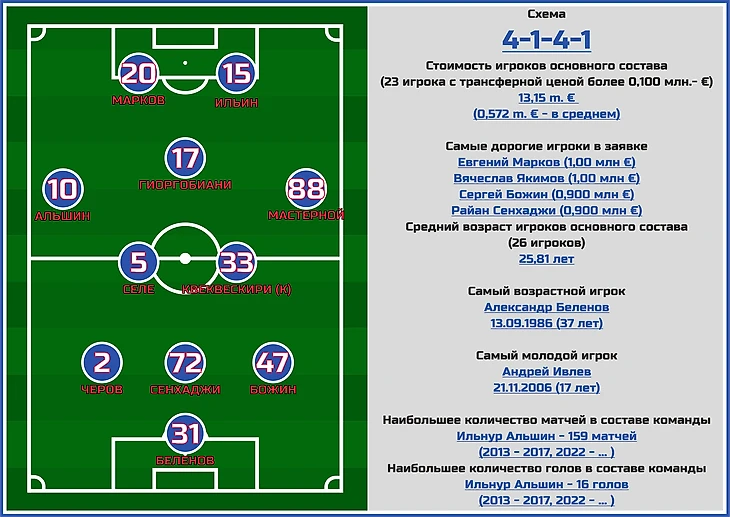 Причем Мастерной и Черов вполне могут появиться и на флангах обороны, если будет выбрана более оборонительная тактика (где есть еще и вновь арендованный у «Ростова» Игорь Калинин).