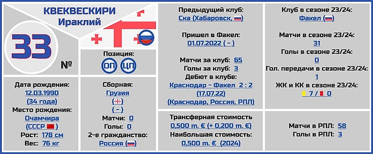 Ираклий ключевой футболист команды в центре поля, его цепкая, на грани фола игра, умение жёстко встретить соперника и отобрать мяч очень важны, а лидерские качества и предельная самоотдача в каждом игровом эпизоде, этот то, чему могут позавидовать многие (не даром именно Квеквескири носит в воронежском клубе капитанскую повязку).