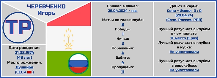 Игорь Геннадьевич Черевченко родился 21 августа 1974 года в столице Таджикской СССР, городе Душанбе, и совсем скоро отпразднует свой полувековой юбилей (что интересно, он не один главный тренер клуба РПЛ, родившийся в этом славном городе, наставник казанского «Рубина» Рашид Маматкулович Рахимов является земляком Черевченко).
