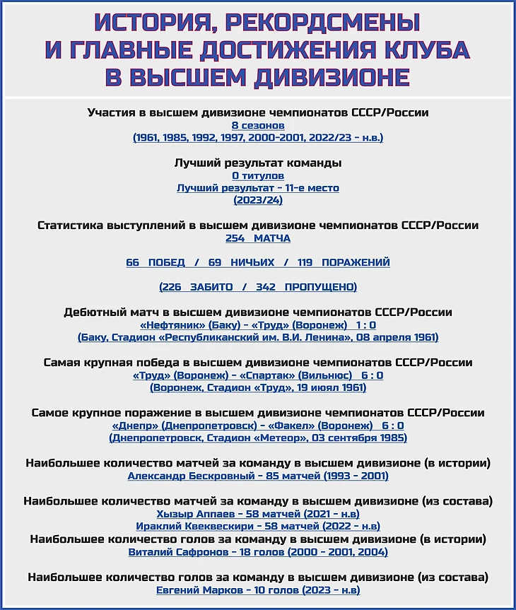 Два года назад воронежская команда наконец-то вернулась в элитный дивизион (и это спустя 22 года очень долгого ожидания) и вот уже два сезона подряд удерживается в когорте сильнейших.