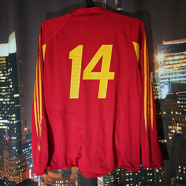 • Игровая футболка от Adidas сезона 2003/2004В Adidas после ЧМ2002 решили видимо, что от технологии двойных футболок отходить резко нельзя и уже в сезоне 03/04 презентовали игровой шаблон с капитально прошитой дополнительной футболкой.