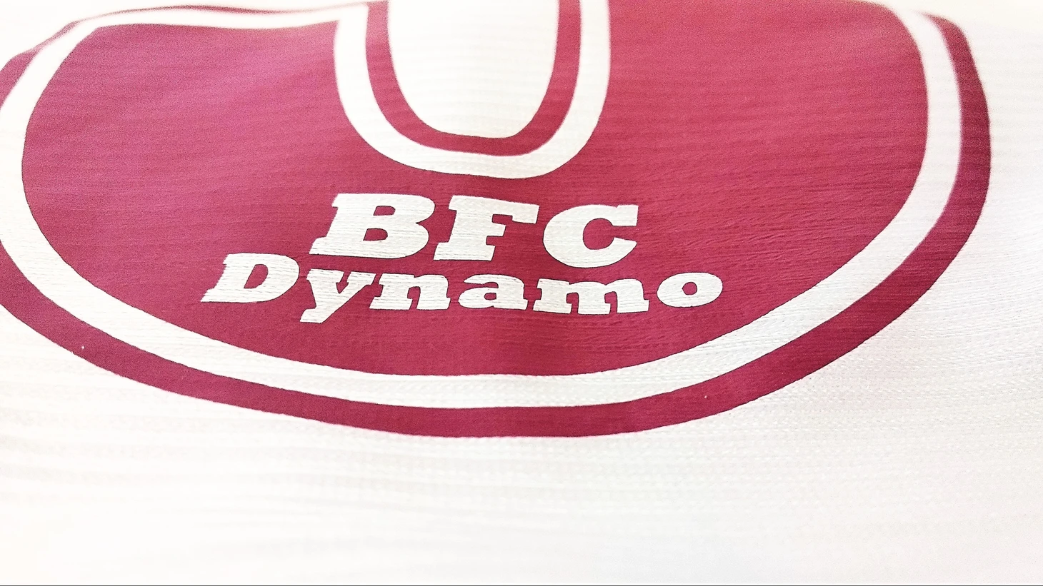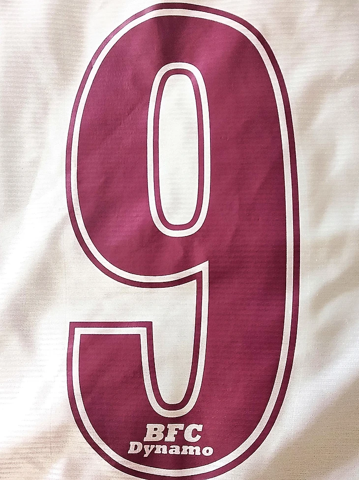 Титульным спонсором в отсутствии желающих выступила сама компания Jako, принт выполнен плёнкой.А вот нанесение номера очень крутое для тех времён. Это термотрансфер, но это уже модное нанесение с вырезанным плоттером «BFC Dynamo» внутри номера -эстетически классно сделано. Для 2002 года и пятой лиги это очень круто.