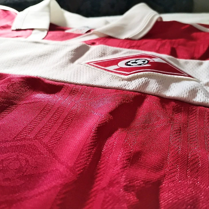 • Ну разве бывает коллекционер футболок без раритетного Спартака 90х?! Сложно описать новому поколению всю важность межсезонного турнира, где играли на ужасном искусственном поле крытого манежа, а команды были даже не второго сорта. В то время изобилия футбола совсем не было, а игры Спартака ждала вся страна. Дуэль киевлян и москвичей была максимально огненной ещё задолго до событий 2013 года. Стоит сказать, что за принципиальным противостоянием, помимо прочего, стояло очень большое взаимоуважение, в чём можно убедиться по общему фото после одного из финалов турнира.