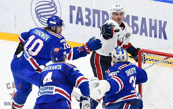 Удаления против такой команды, как СКА, таят опасную угрозу. Не зря клуб с берегов Невы идет первым по реализации большинства, больше 30% их показатель. Ян Муршак за подножку был отправлен в штрафной бокс. Игроки питерского клуба достаточно быстро расставились в зоне, и Никита Гусев на правах лидера команды в этот вечер стал автором второй шайбы хозяев. Никита достаточно долго удерживал шайбу перед воротами гостей, выцеливал, казалось, передачу, а в итоге нашел лазейку между клюшкой и воротами Лисутина, и - попал.