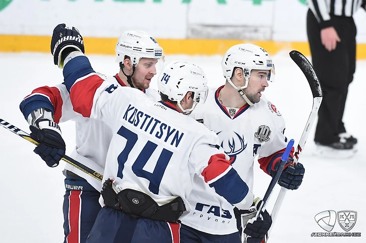 На помощь коллективу Скудре пришло удаление череповчан и мощная пушка Дениса Баранцева. Именно его бросок от синей линии незадолго до окончания периода восстановил паритет в игре.