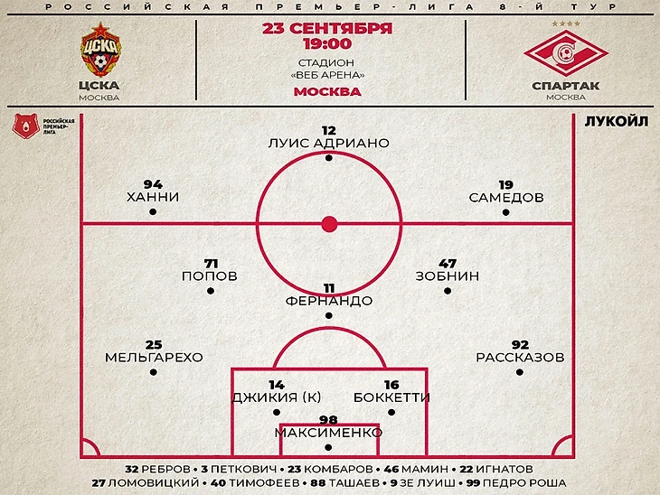 Что касается «Спартака», то Массимо Каррера сыграл по схеме 4-3-3. И на острие атаки выдвинул Луиса Адриано, которого по краям поддерживали Самедов и Ханни.