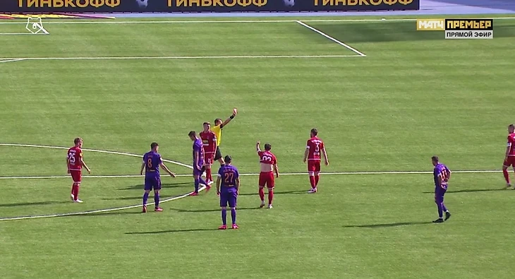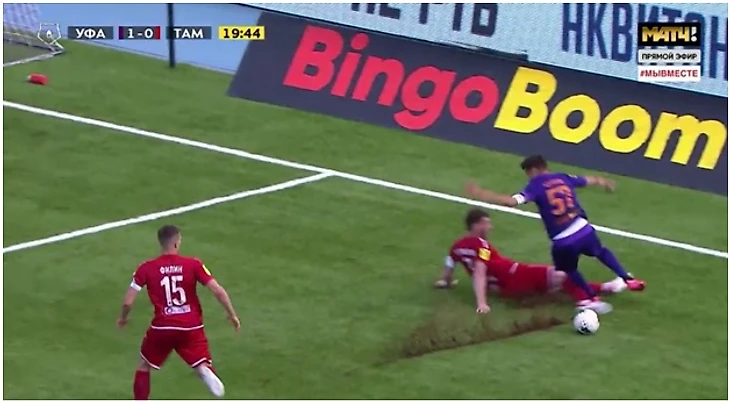 На 14-ой минуте Кротов вошел в штрафную площадь, убрал мяч под себя, где Тетрашвили срубил игрока «Уфы». Арбитр встречи Виталий Мешков сам отправился смотреть ВАР и после просмотра указал на точку.