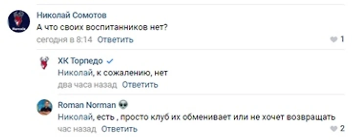 Генеральный директор «Торпедо» Александр Харламов дал абсолютно штамповый комментарий об обмене между клубами: «Этот обмен – та ситуация, когда в плюсе остались оба клуба. Михаил Смолин – талантливый игрок, но, к сожалению, в последние годы не может закрепиться в основном составе «Торпедо». В этой ситуации помочь ему перезагрузить карьеру поможет смена обстановки». Удивительно, что в Нижнем решили дать комментарий по этой сделке.