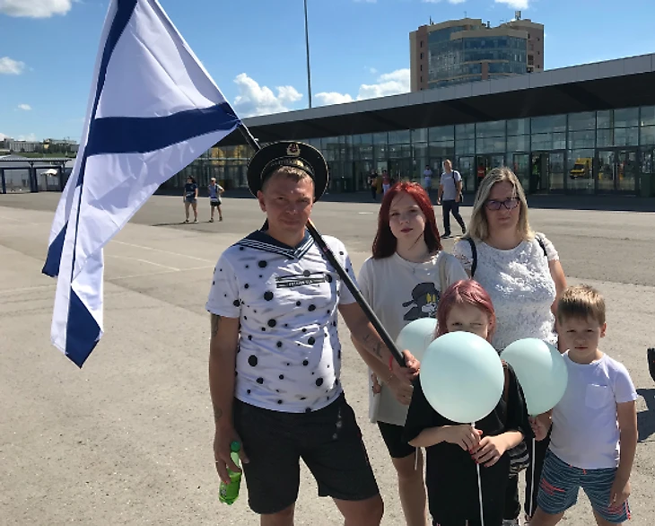 А еще в последнее воскресенье июля празднуется день Военно-Морского Флота. Среди пришедших на футбол были болельщики, связанные с флотом.