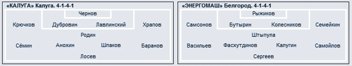 «Калуга»: Чернов, Крючков, Лавлинский, Дубровин, Храпов, Баранов, Родин, Анохин, Семин, Шпаков, Лосев (Петров, 61).