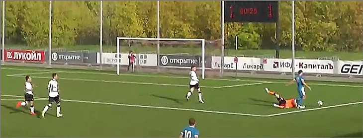 А ведь могло быть и хуже, назначь на 81-й минуте арбитр пенальти в ворота «Торпедо». Соколов у штрафной гостей обыграл одного соперника и на вираже решил заработать фол, красиво упав на газон. Судья на это не отреагировал, динамовцы устремились в контратаку, правый защитник Сычёв, увернувшись от Канаева, протащил мяч метров 30, отдал пас в пустую зону за спину Закускину – на ход Сёмину. Сикач громко крикнул «Я!» и побежал к углу штрафной, хотя стопроцентной необходимости в этом не было. Футболист гостей успел прокинуть мяч, и вратарь его задел. Нарушение произошло внутри штрафной площади, но судья «вынес» его за её пределы, назначив вместо пенальти обычный штрафной удар и предъявив Сикачу жёлтую карточку…