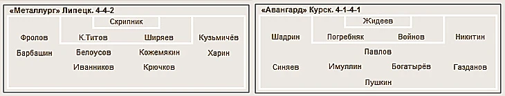 «Металлург»: Скрипник, Кузьмичёв, Ширяев, Фролов, Титов.К, Кожемякин, Белоусов, Иванников (Ахвледиани, 84'), Харин (Овчинников, 61), Барбашин (Подковыров, 89), Крючков (Титов.А, 90).