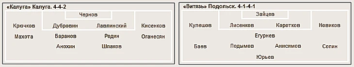 «Калуга»: Чернов, Дубровин, Лавлинский, Крючков, Кисенков, Баранов, Родин, Шпаков, Оганесян (Семин, 90+), Махота, Анохин.