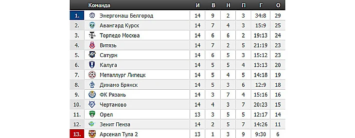 «ЭНЕРГОМАШ» Белгород – «АРСЕНАЛ-2» Тула – 4:0 (3:0)