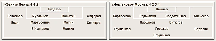 «Чертаново»: Ломаев, Алексеев (Кондаков, 77), Редькович (А.Кузнецов, 86), Солдатенков, Бартасевич, Паршиков (Тюменцев, 84), Витюгов, Сарвели (Цыпченко, 72), Горшков, Глушенков, Прудников (Котов, 84).