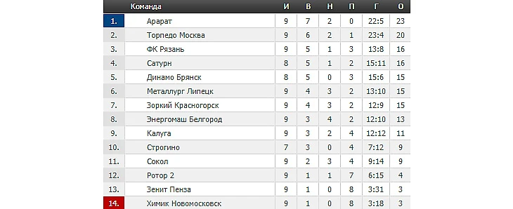 «АРАРАТ» Москва – «СОКОЛ» Саратов – 4:0 (0:0)