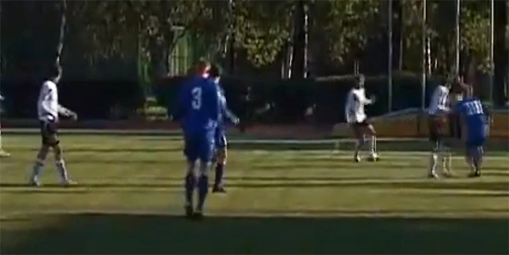 Затем была победа 1:0, пришедшая на первой минуте компенсированного времени матча с брянским «Динамо». Автором гола стал 17-летний защитник Алексей Шумских, сейчас выступающий за «Нижний Новгород». А помните, кто играл в том матче за брянское «Динамо»? Отданные бело-голубым в аренду давно завязавший с большим футболом экс-торпедовец Руслан Тарала и вице-капитан сегодняшней торпедовской команды Артём Самсонов. Вот он – на стоп-кадре с видео. №3. Волос, что характерно, не было уже тогда…