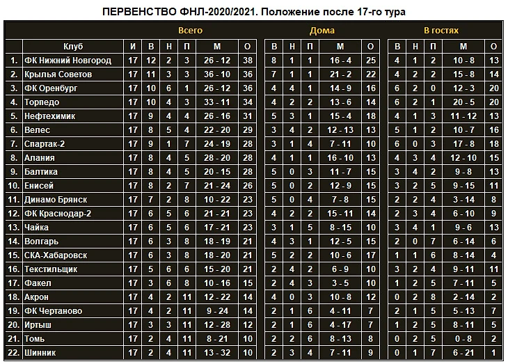 «Чёрный» уик-энд лидеров. Команды, занимающие три первых места в таблице ФНЛ, в 17-м туре успеха не добились