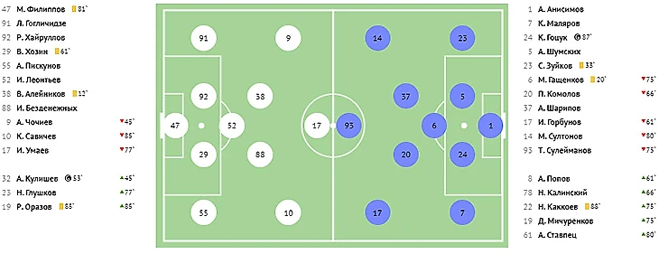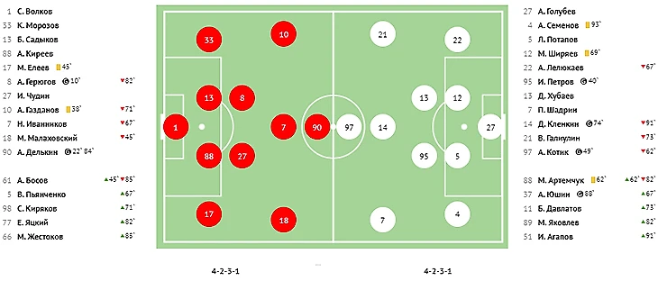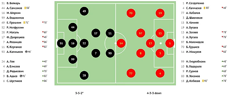 По сути, весь второй тайм «Алания» пыталась отыграться, однако поймал кураж вратарь «Торпедо» Виталий Ботнарь, совершивший несколько умопомрачительных сэйвов. А на второй добавленной минуте хозяевам удалась-таки контратака. В её завершающей стадии Амур Калмыков вывел на ударную позицию Владислава Адаева, и тот не промахнулся, пробив низом в дальний угол.