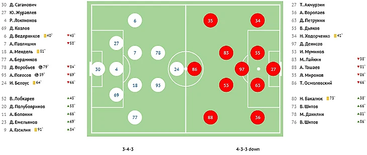 На 85-й минуте Артём Делькин после отбора мяча со стороны Сергея Кирякова аккуратно пробил в ближний угол – 3:3. Однако гости успели вырвать победу. Данил Кленкин обокрал защитника «Акрона» Константина Морозова, нанес удар в ближний угол, а на добивании первым оказался Александр Юшин.