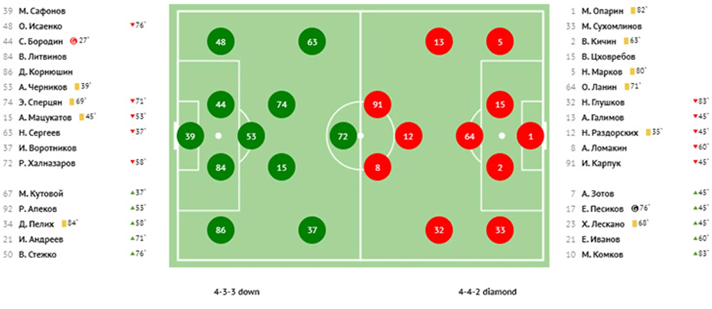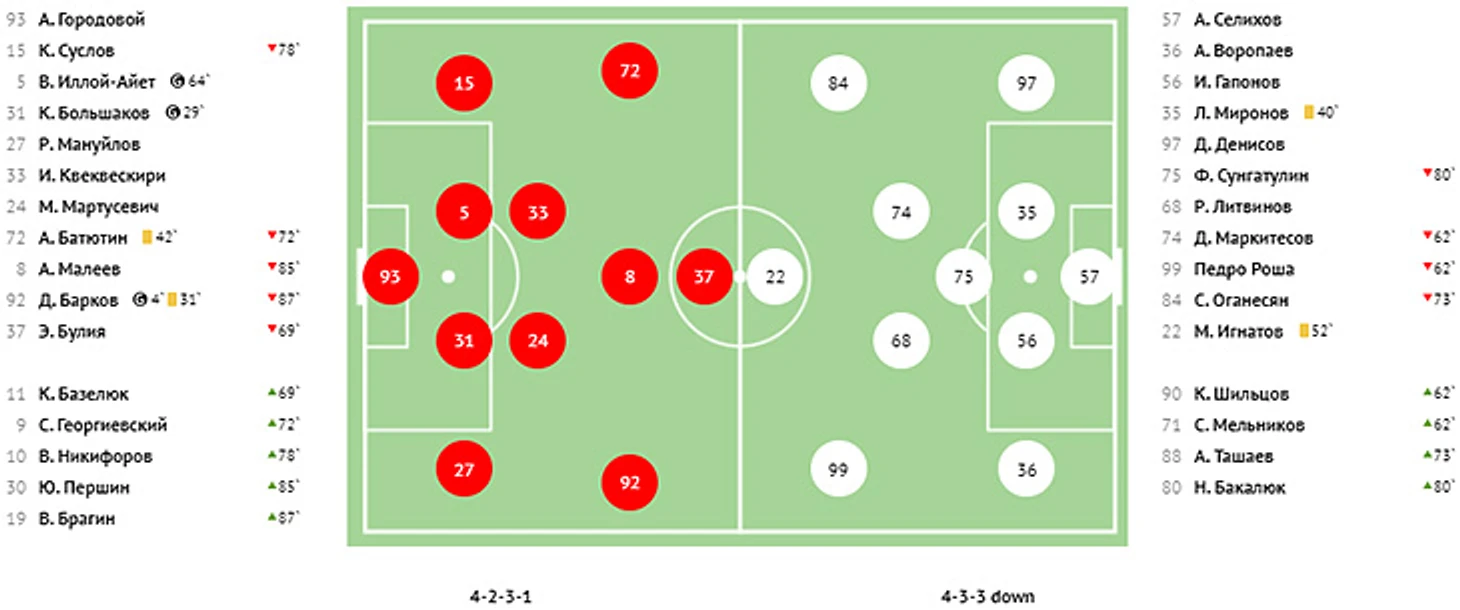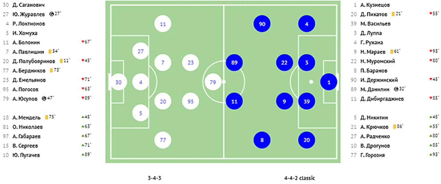 Голы: Барков, 5 (1:0). Большаков, 29 (2:0). Эмерсон, 65 (3:0).