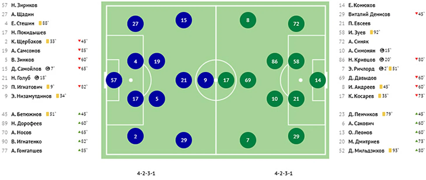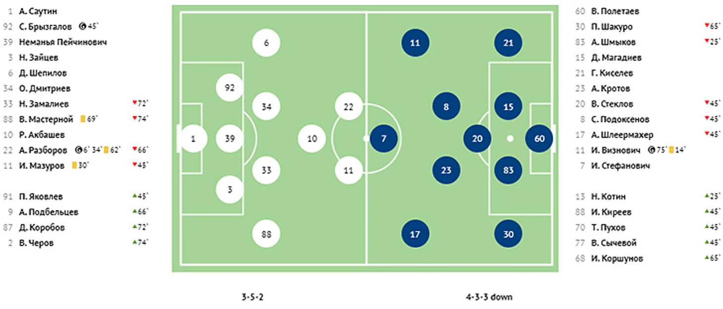 Голы: Разборов, 7 (1:0). Разборов, 35 (2:0). Брызгалов, 45+ (3:0). Визнович, 76 (3:1).