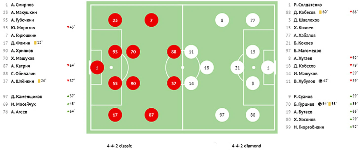 Голы: Хубулов, 43 - с пенальти (0:1). Гурциев, 90+ (0:2).