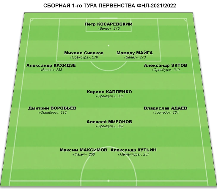 Левые полузащитники: Владислав Адаев («Торпедо», 264), Максим Сидоров («Кубань», 238), Владлен Бабаев («Акрон», 237).