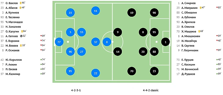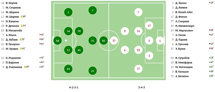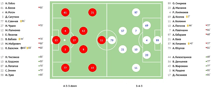 Голы: Воробьев, 20 (1:0). Сиваков, 26 (2:0). Прудников, 59 (3:0). Фамейе, 83 - с пенальти (4:0).