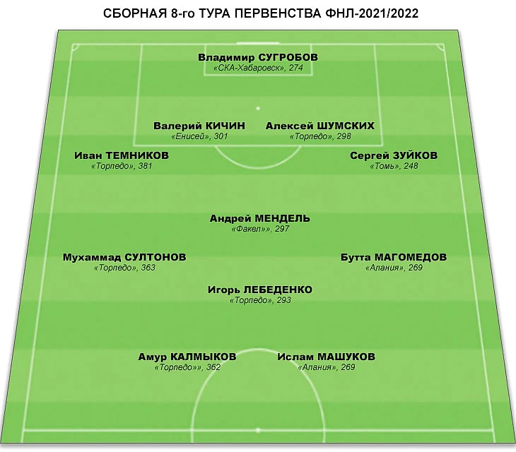 Символическая сборная 8-го тура ФНЛ. Пять игроков из «Торпедо», двое – из «Алании»
