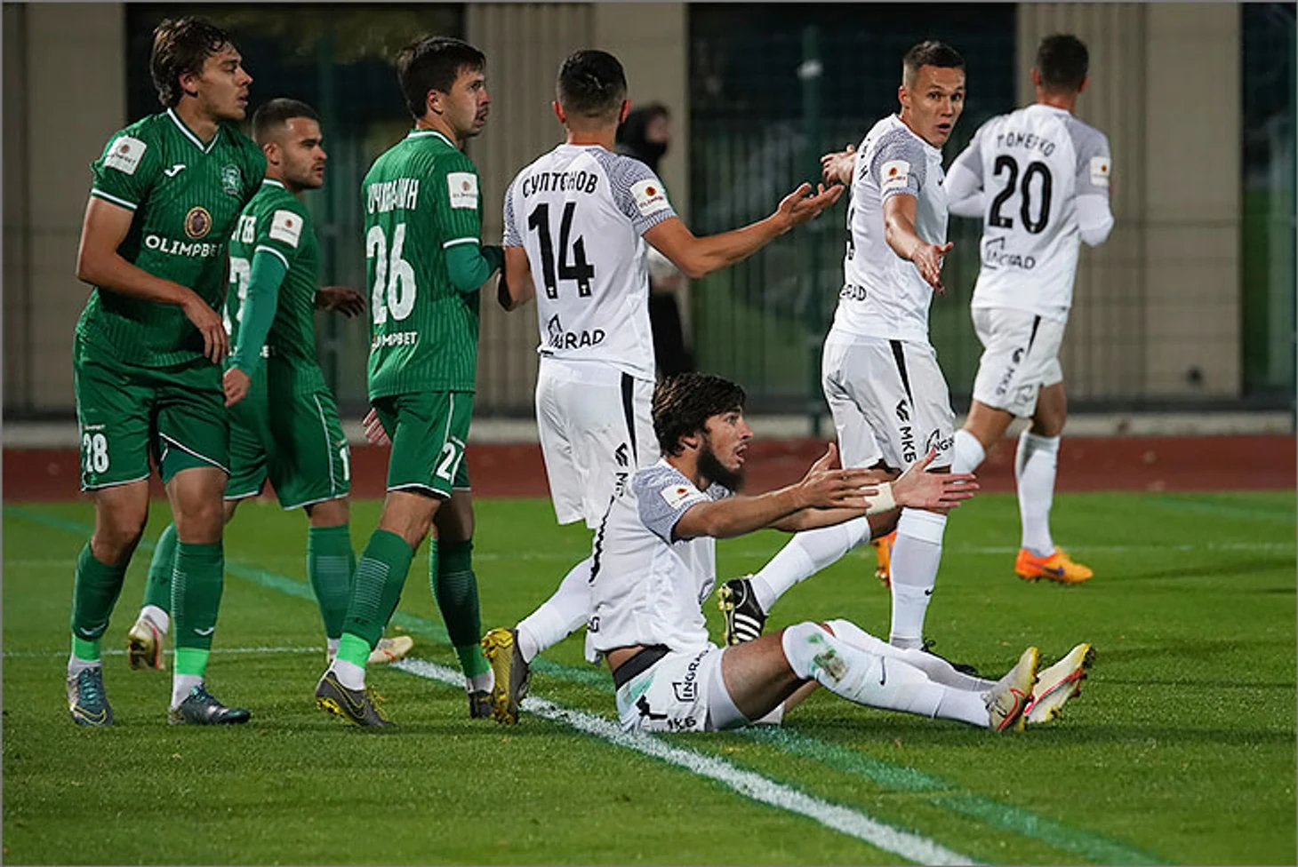 Голы: Ставпец, 24 - с пенальти, (0:1). Корж, 31 (0:2). Лебеденко, 51 (1:2). Калмыков, 57 (2:2). Кудряшов, 58 (2:3). Калмыков, 82 (3:3).