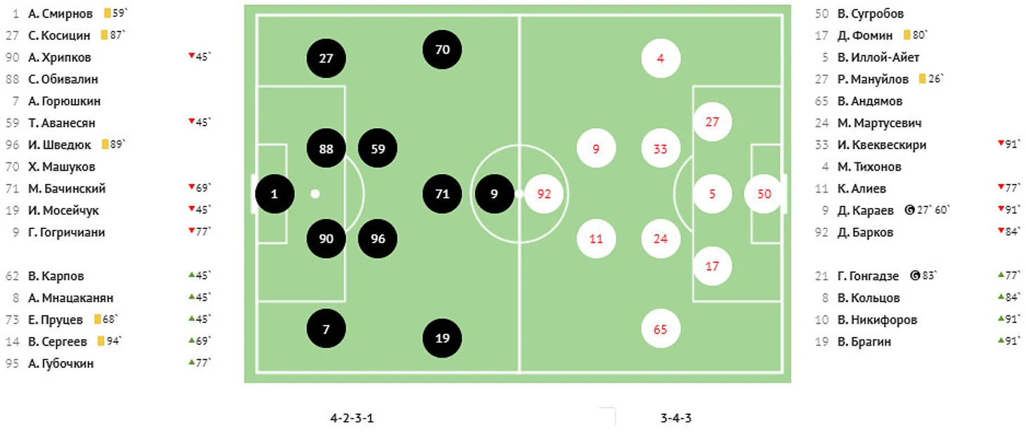 Голы: Караев, 27 (0:1). Караев, 59 - с пенальти, (0:2). Гонгадзе, 82 (0:3).