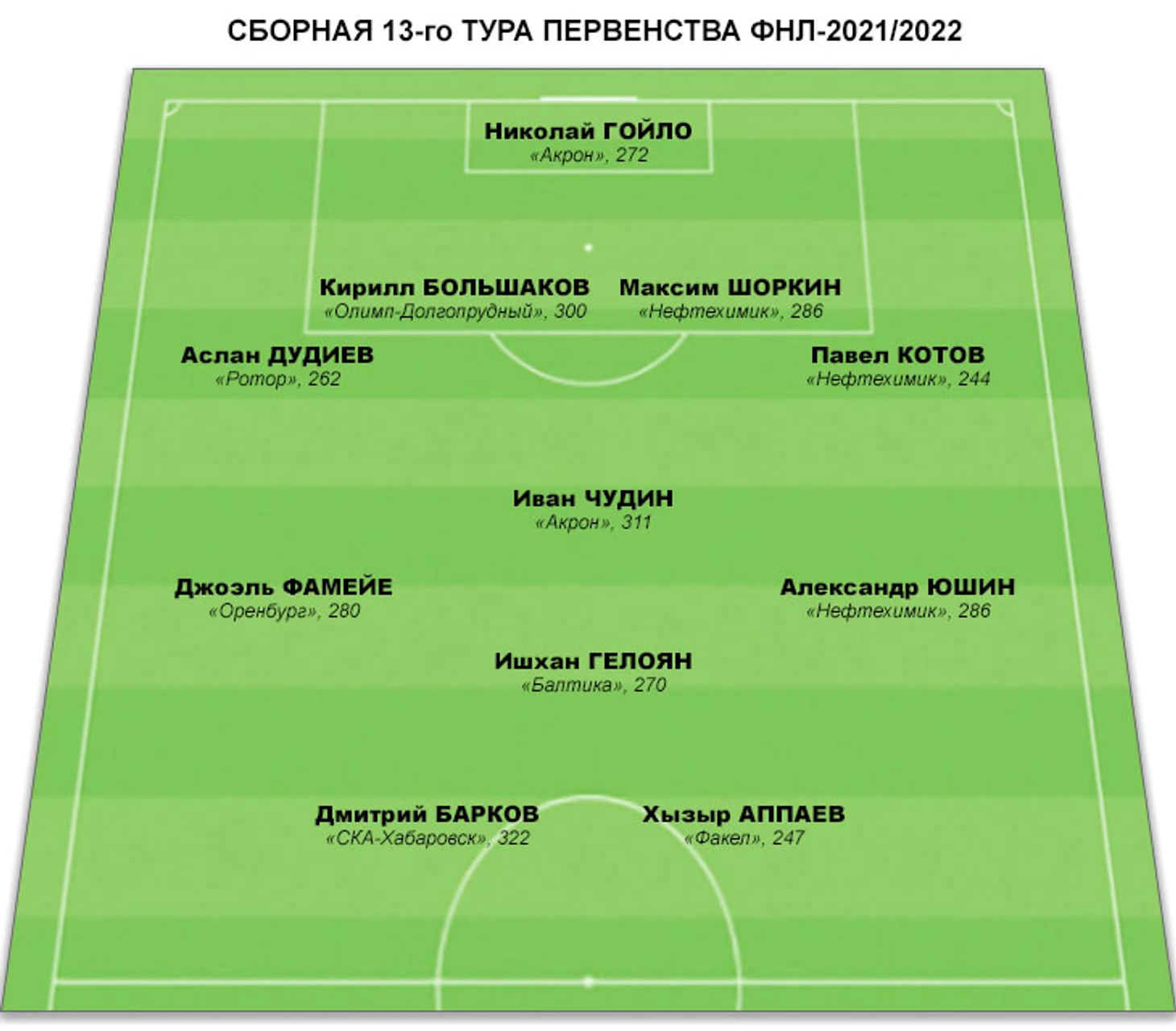 ТРОЙКИ ЛУЧШИХ ИГРОКОВ 13-го ТУРА ПО АМПЛУА
