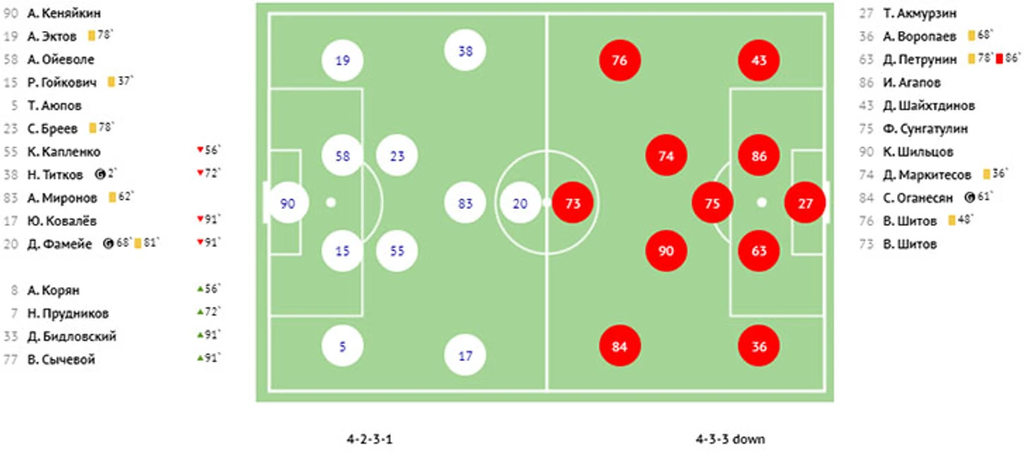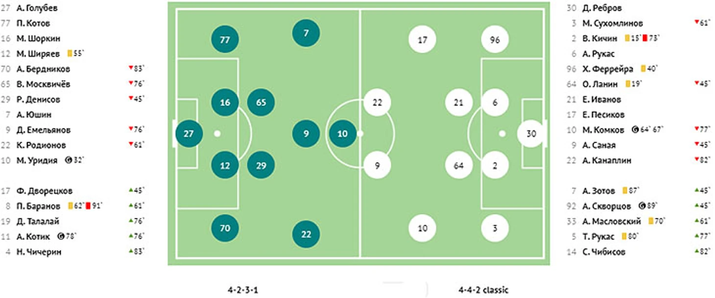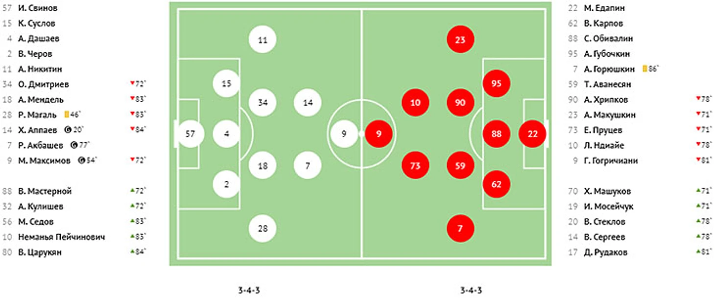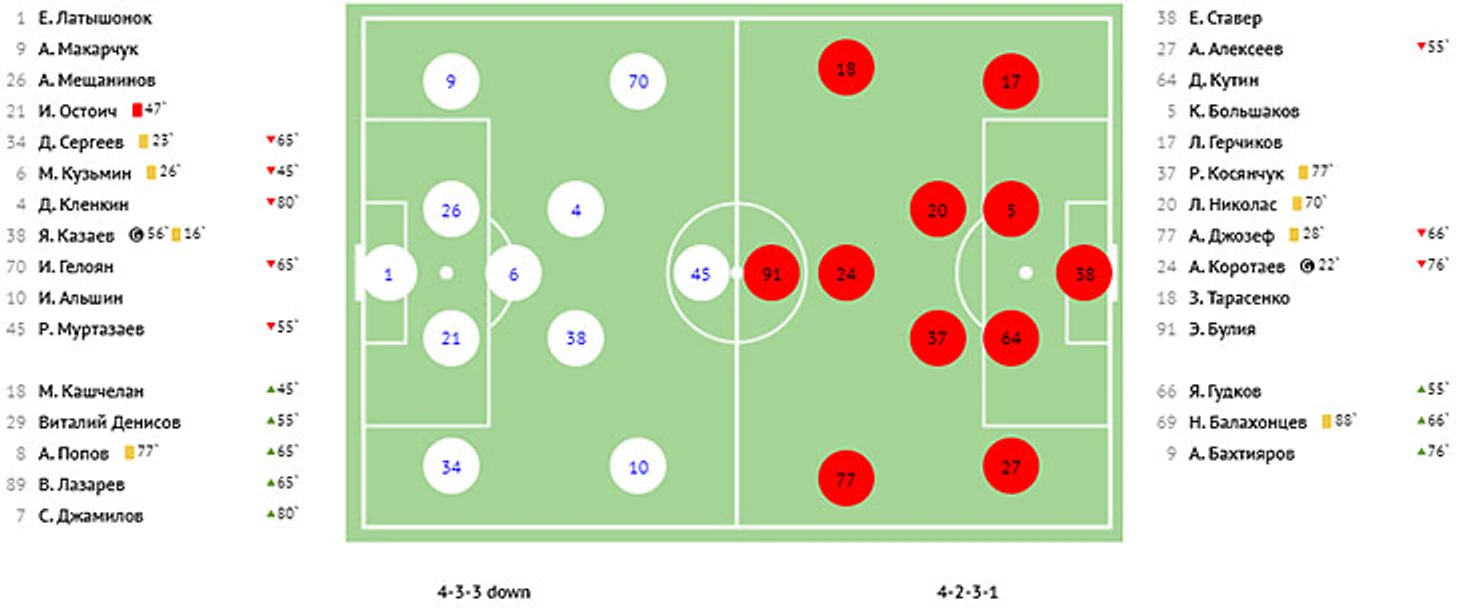 Отчасти преимущество хозяев было и в глубине скамейки, в то время как кадровая ситуация в стане «красно-белых» не позволила Евгению Бушманову как-то повлиять на игру с помощью замен. Их спартаковцы вообще не сделали ни одной.