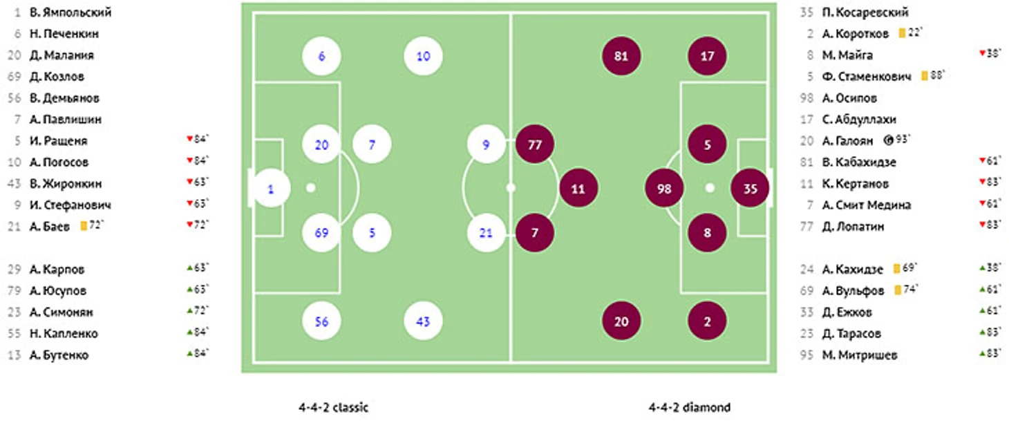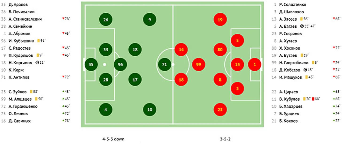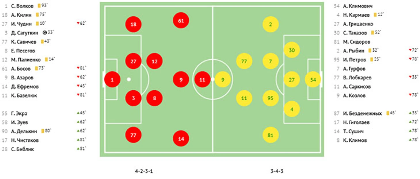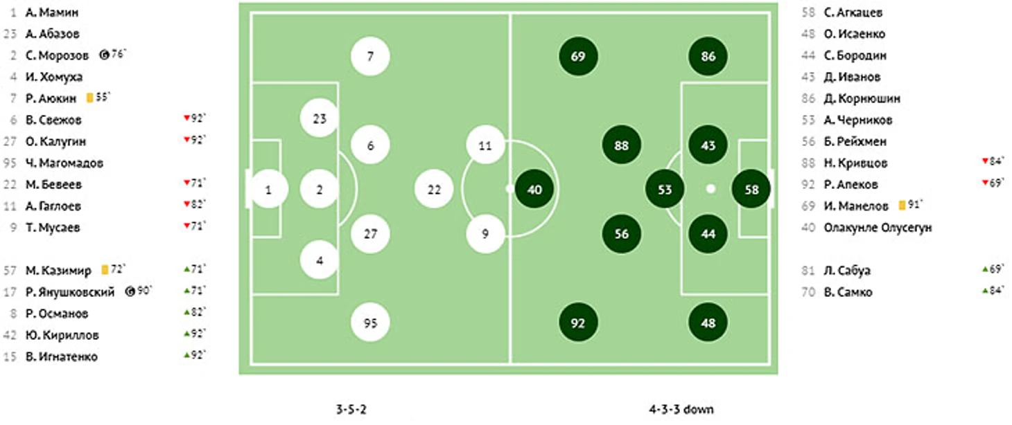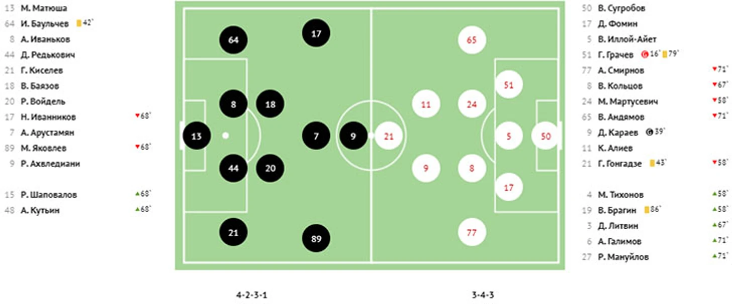 Отчасти преимущество хозяев было и в глубине скамейки, в то время как кадровая ситуация в стане «красно-белых» не позволила Евгению Бушманову как-то повлиять на игру с помощью замен. Их спартаковцы вообще не сделали ни одной.