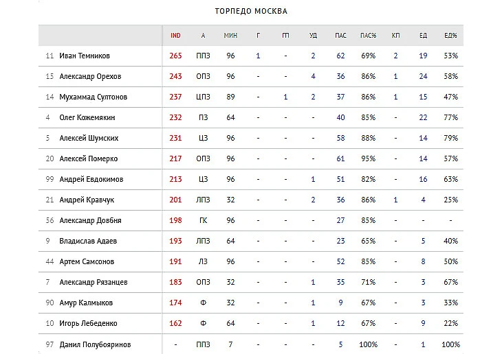 Точные ключевые передачи Орехов, Султонов, Темников, Кравчук – по 1