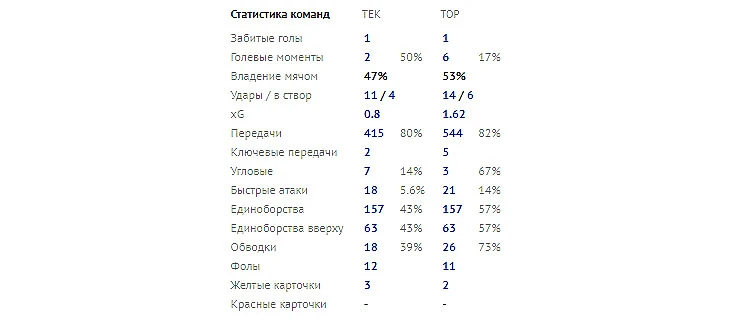 «Торпедо» теряет очки в игре с «Текстильщиком» - 1:1. Командные и личные показатели матча по данным InStat