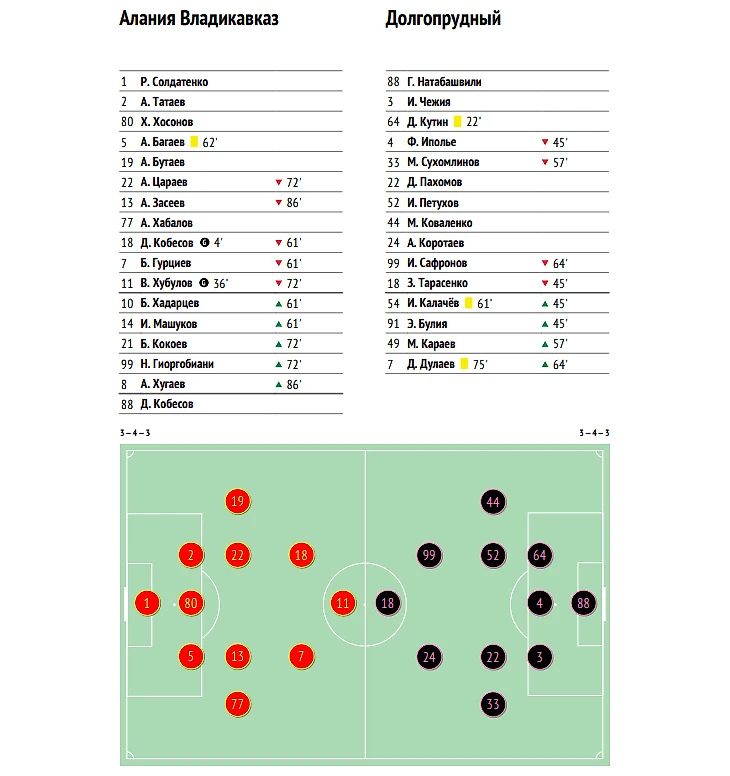 Ведя 2:0, во втором тайме «барсы» позволили себе не «убиваться». Долгопрудненцы же за вторую сорокапятиминутку создали лишь один реальный голевой момент, который реализовать не сумели. А вот владикавказцы, даже особо не напрягаясь, могли забивать минимум дважды.
