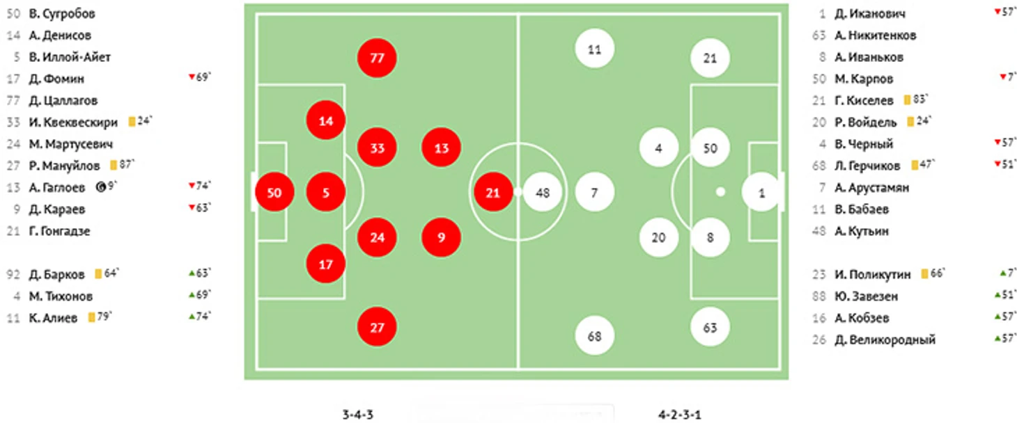Затем Владимир Хубулов классной передачей нашёл в штрафной соперника Батраза Гурциева, он здорово оценил ситуацию и покатил мяч на Батраза Хадарцева, который с нескольких метров спокойно поразил ворота. А всего лишь через три минуты Владимир Хубулов вступил в отбор на левом фланге, завладел мячом, вошёл в чужую штрафную и технично прострелил на дальнюю штангу, которую в два касания хладнокровно замкнул Батраз Гурциев.